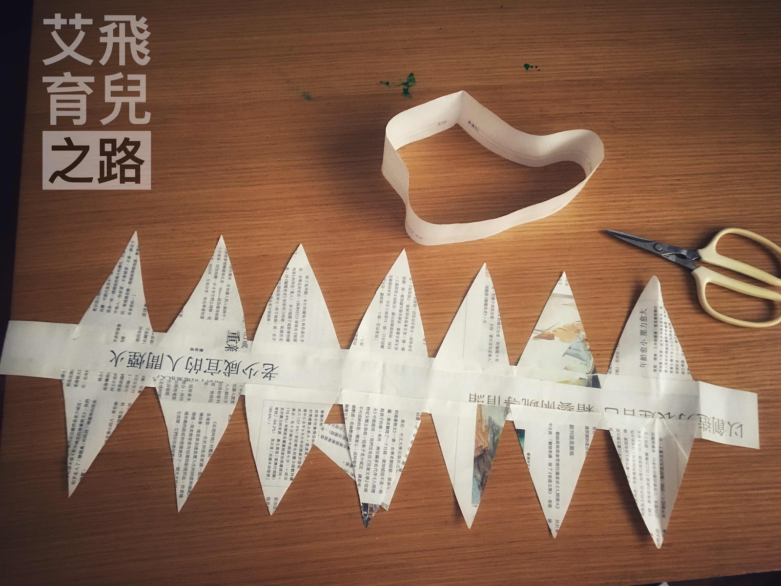 - 先用報紙剪一長條,並量度孩子的頭圍,作頭帶