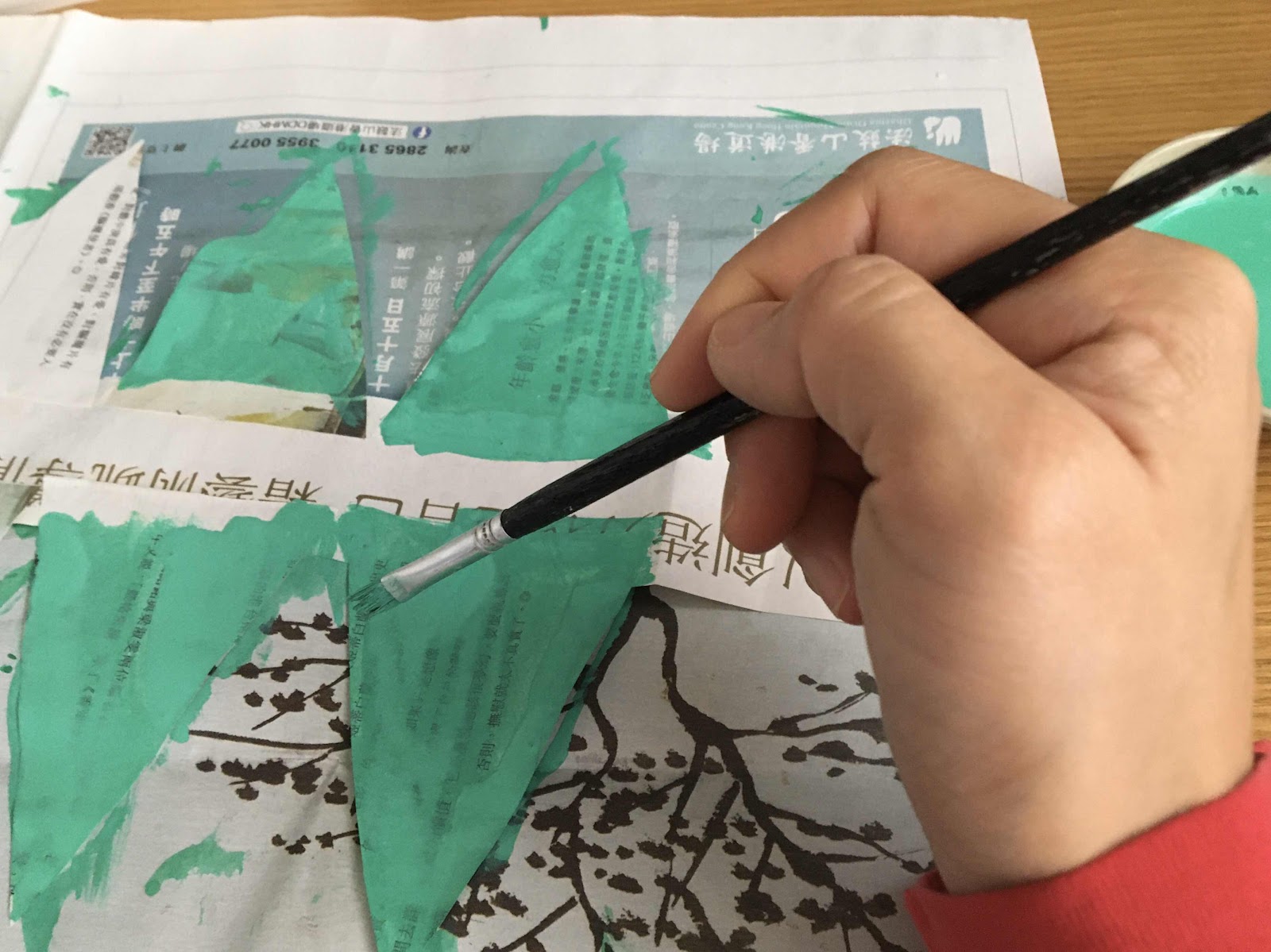 - 報紙剪出多個三角形,並貼在脊骨上(如圖)